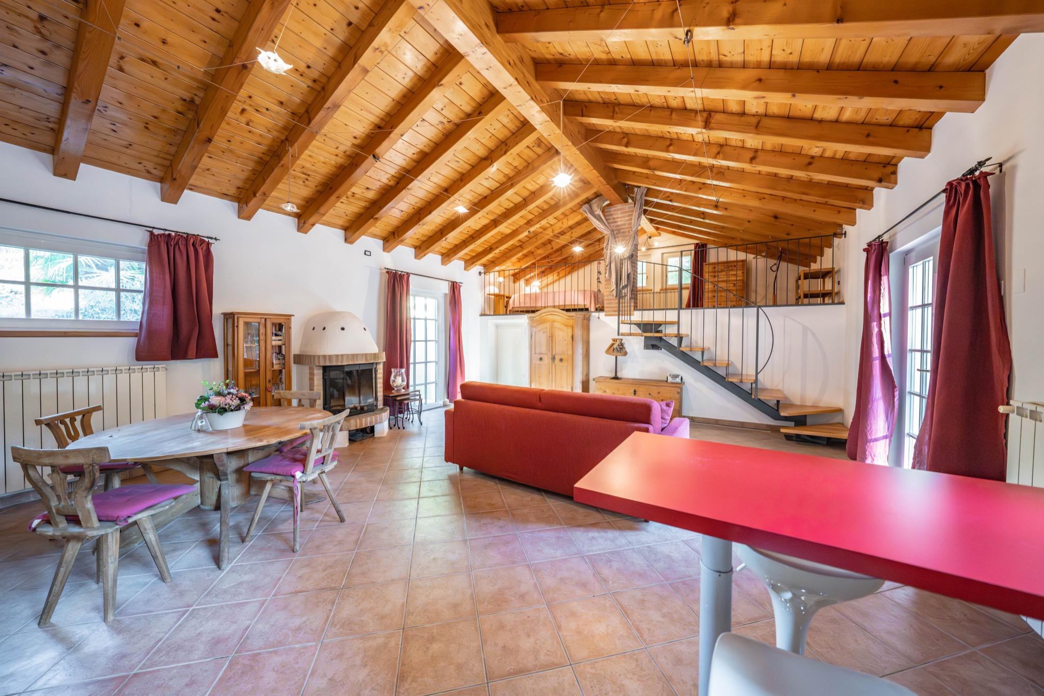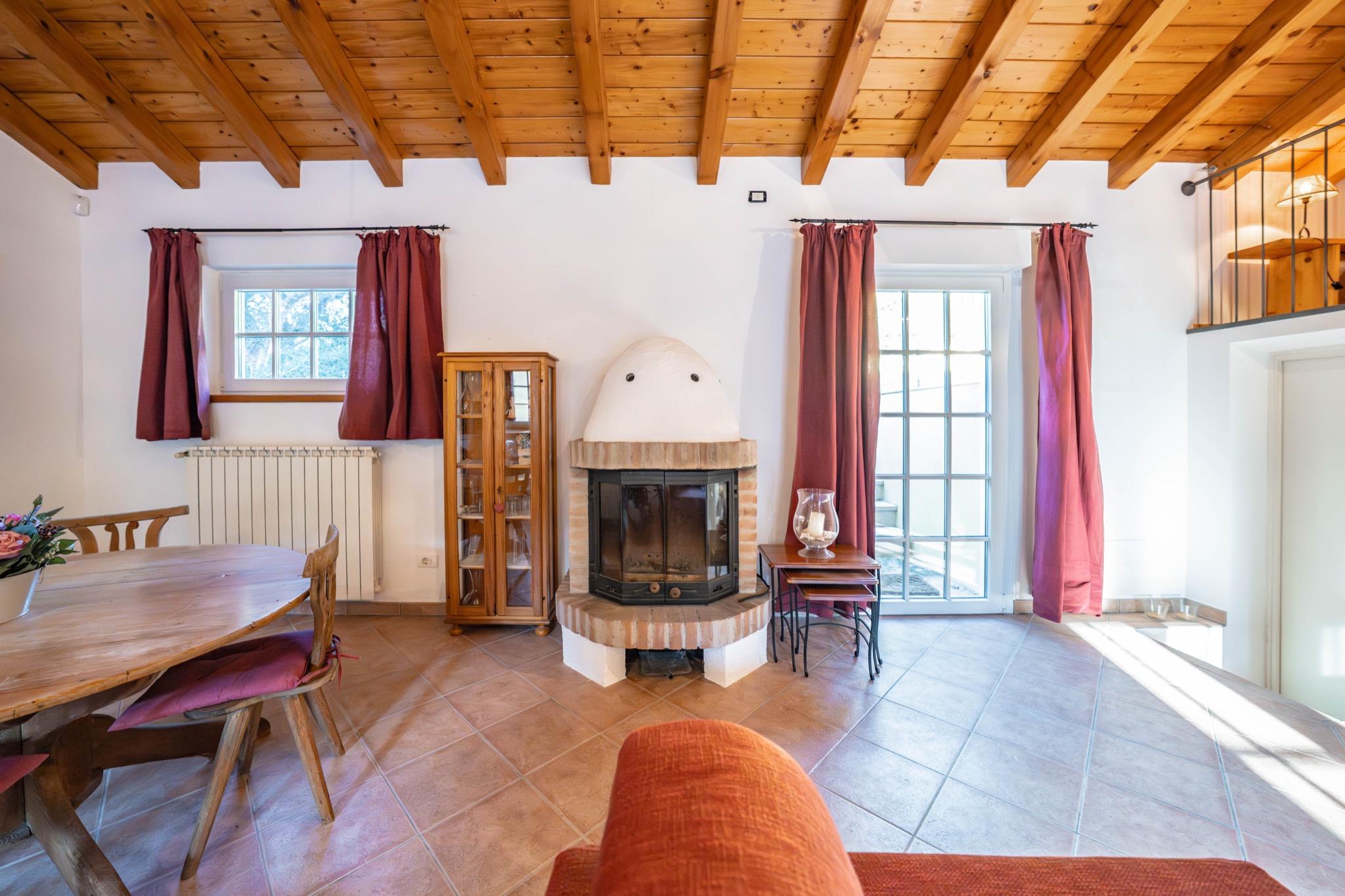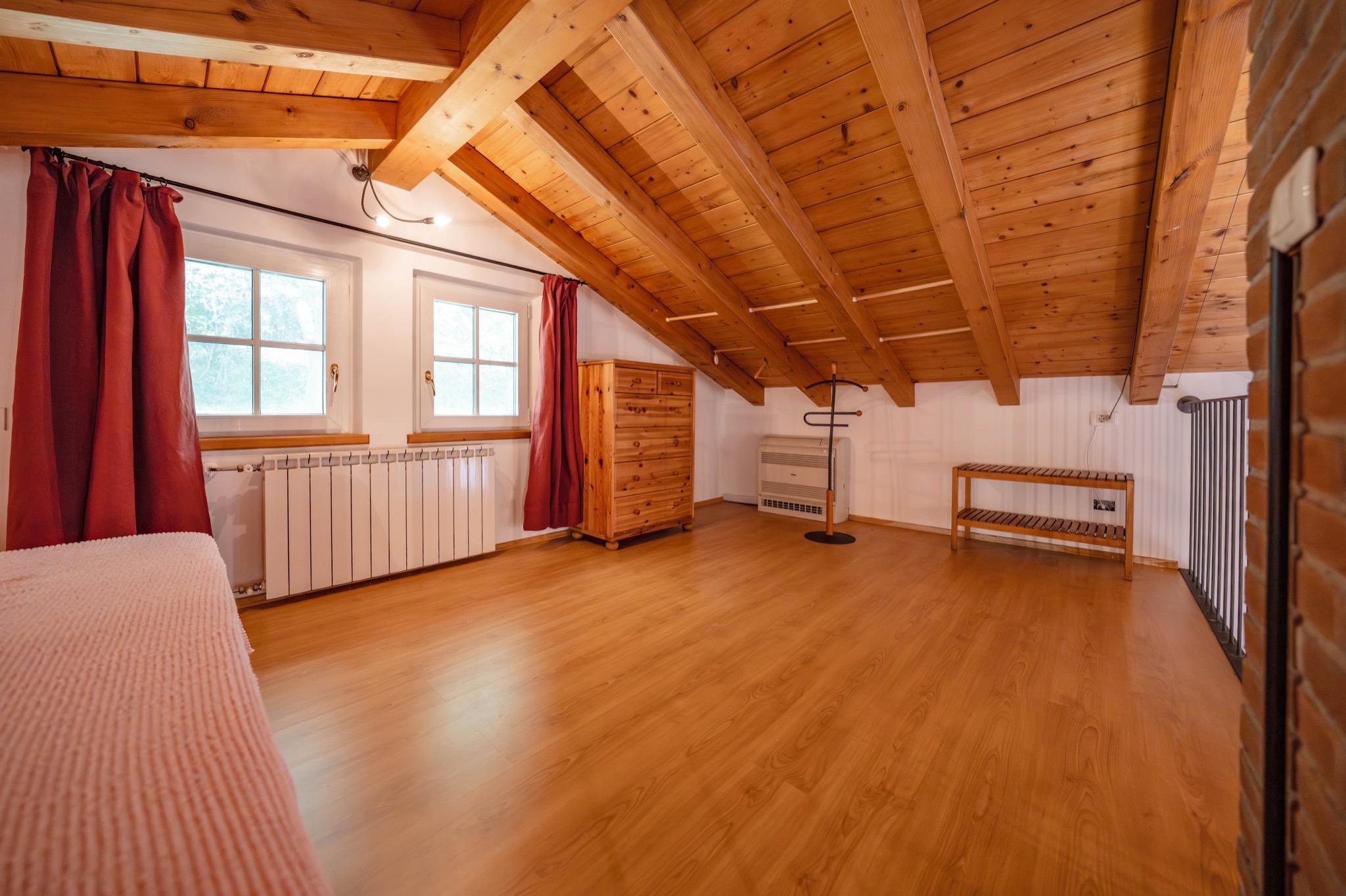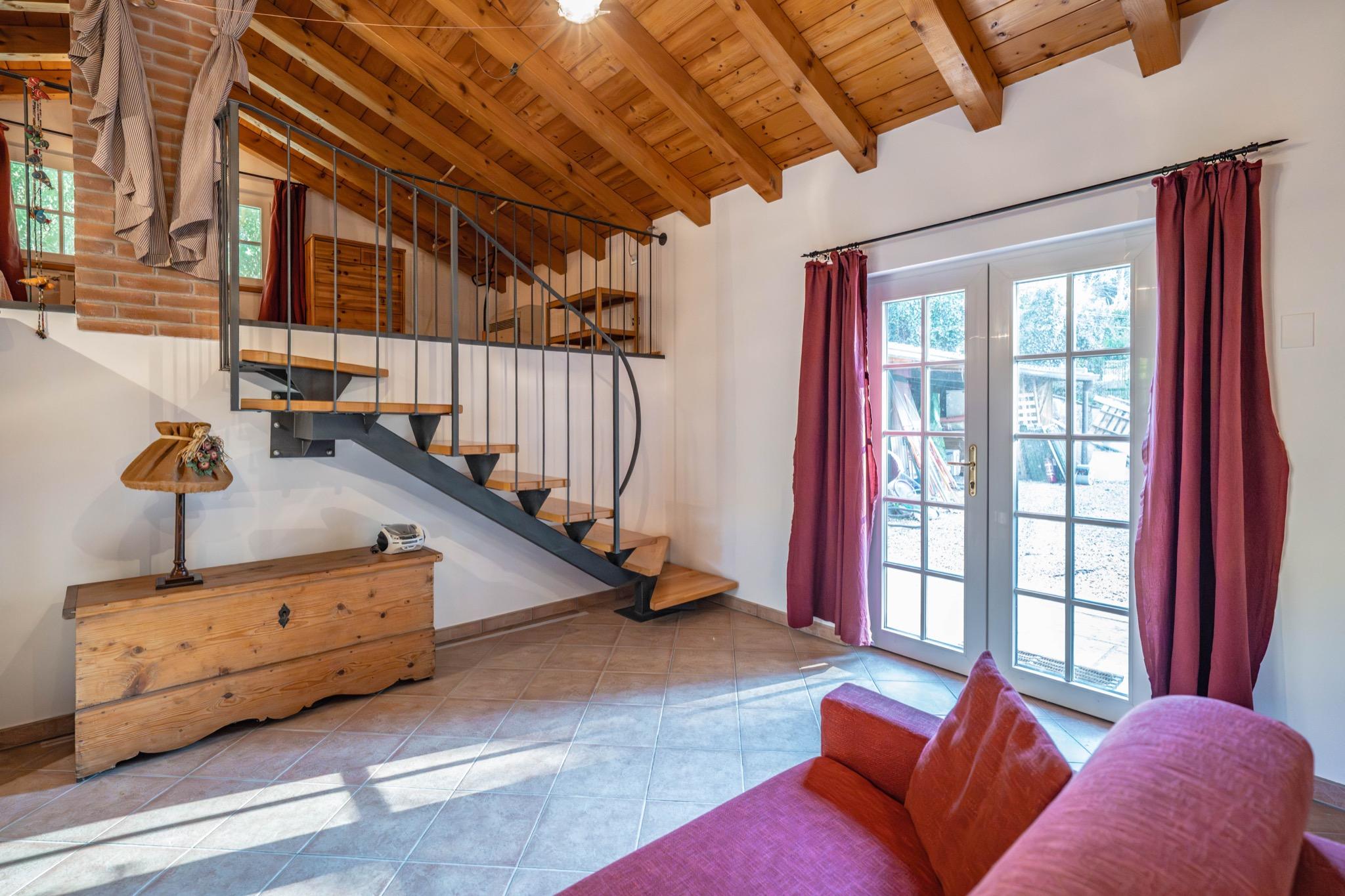 - Spacious studio with mezzanine: Open-plan layout with a cozy double bed on the mezzanine under a charming sloped wooden ceiling.