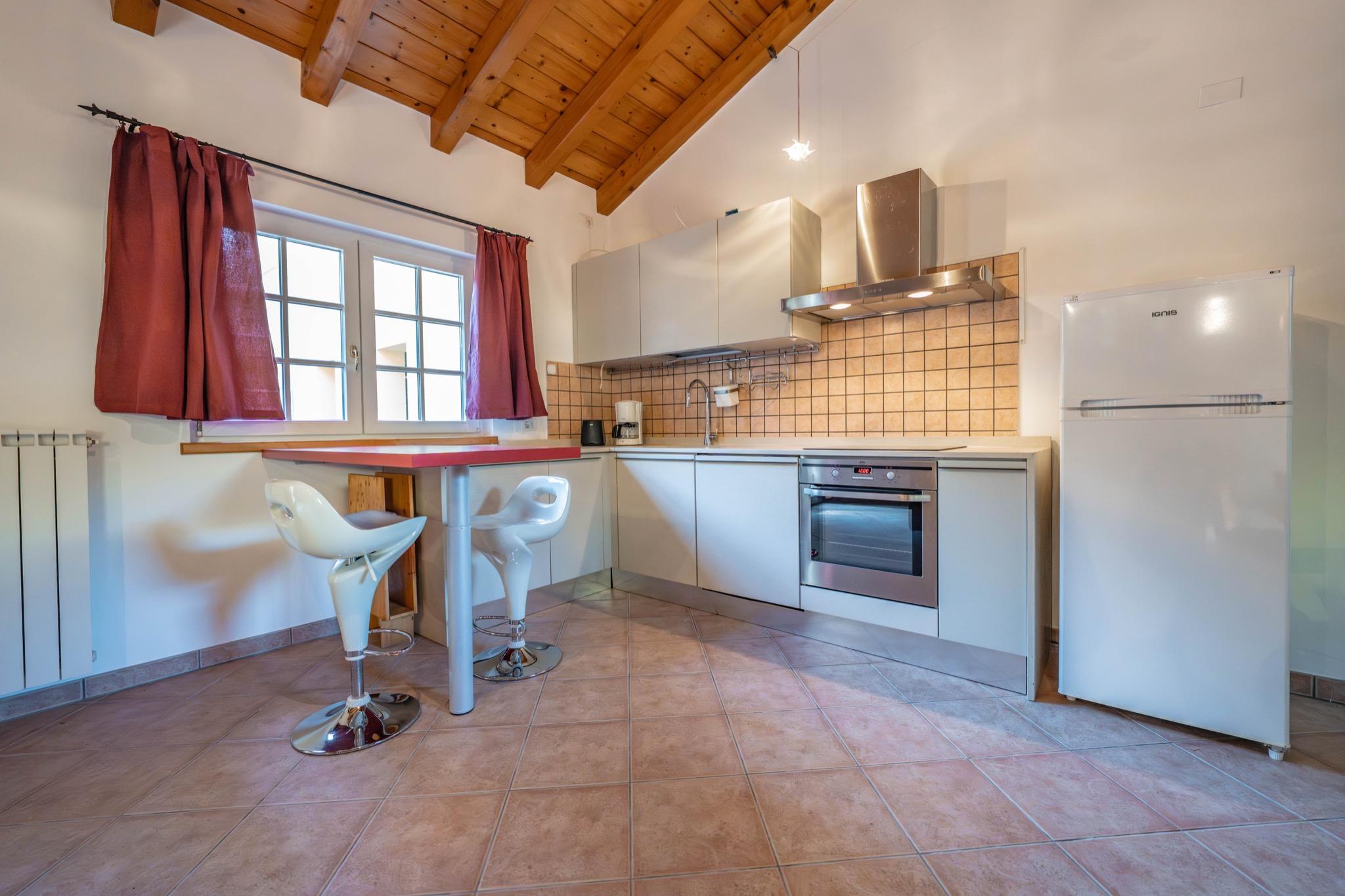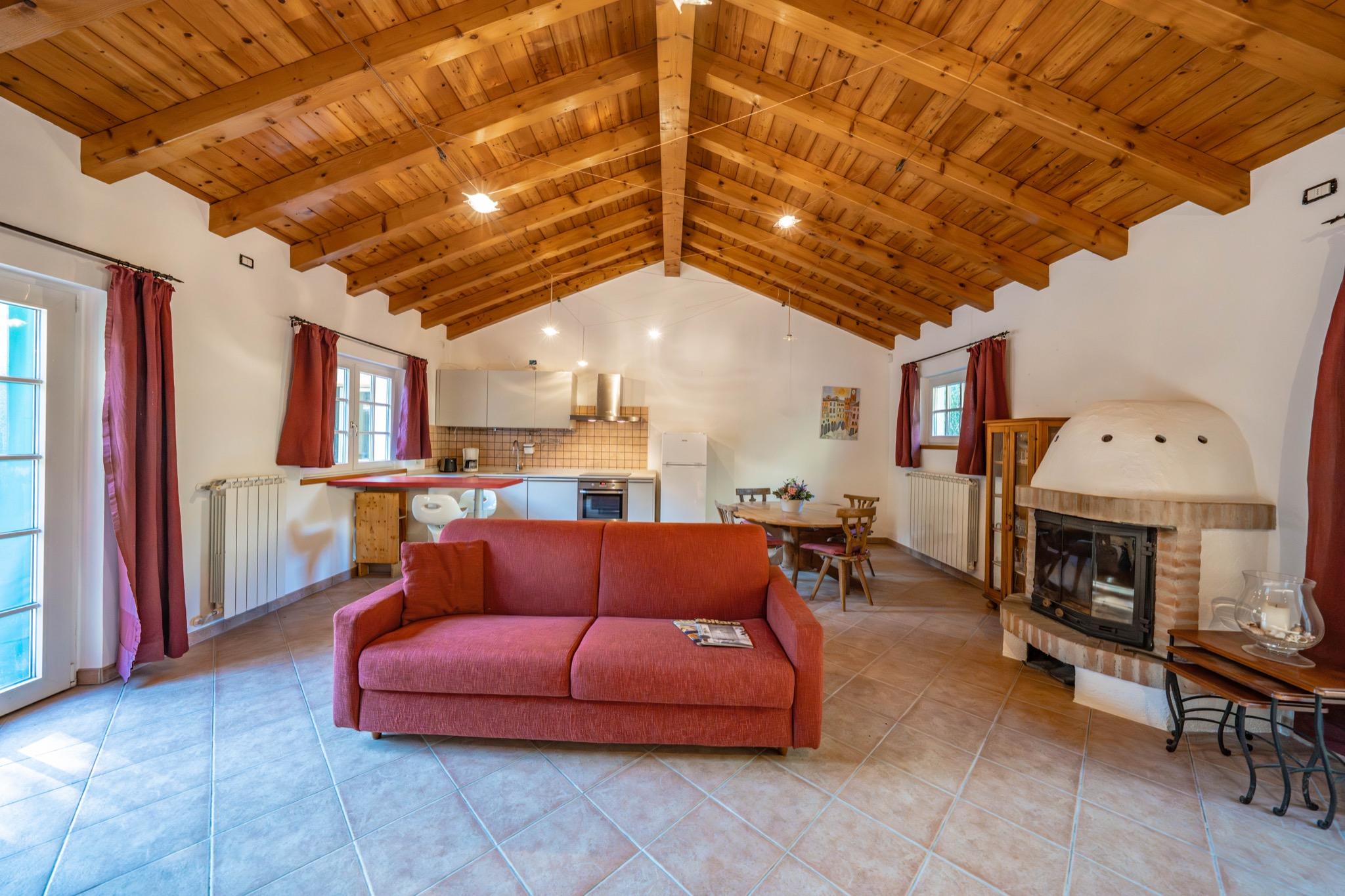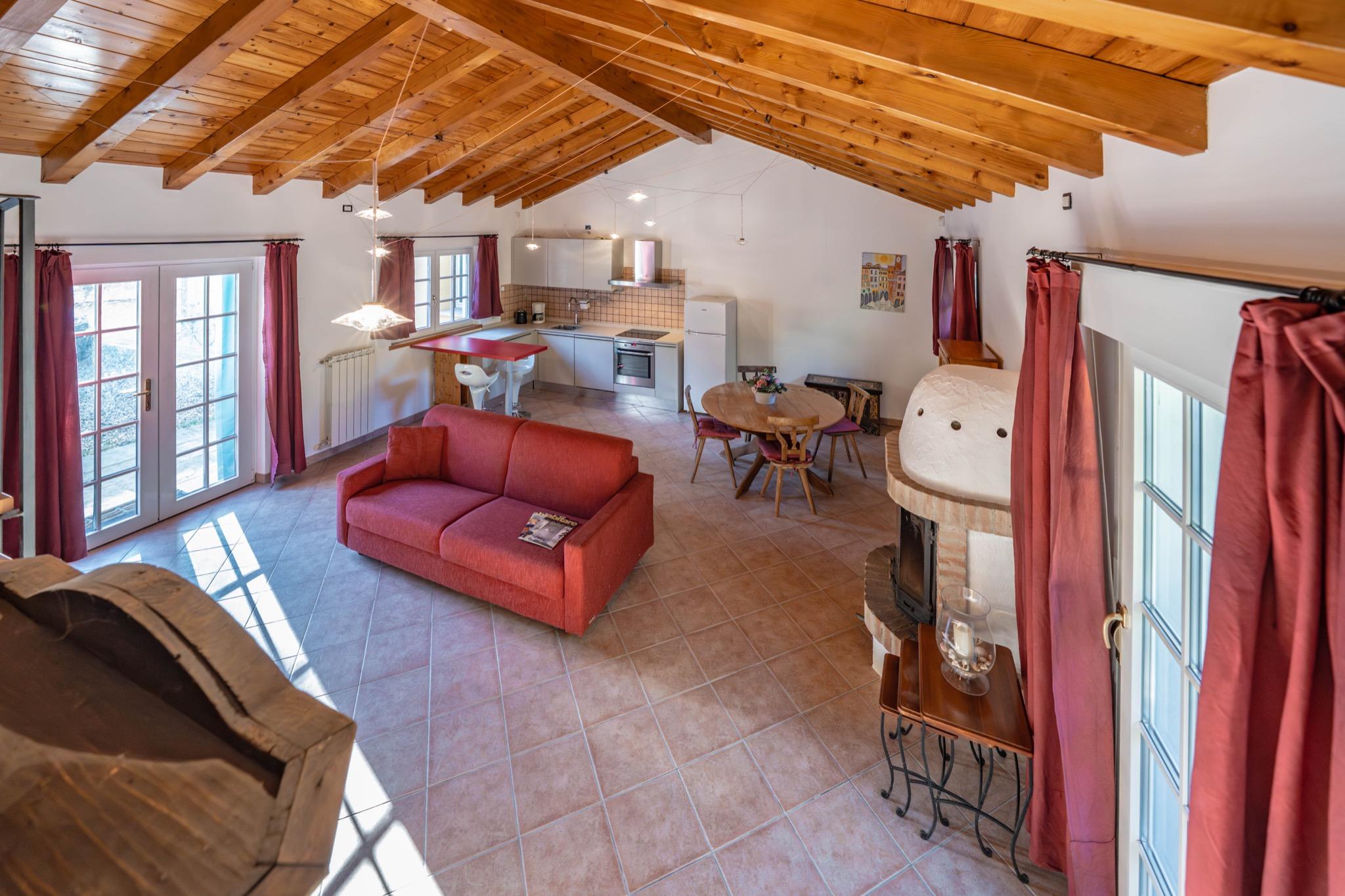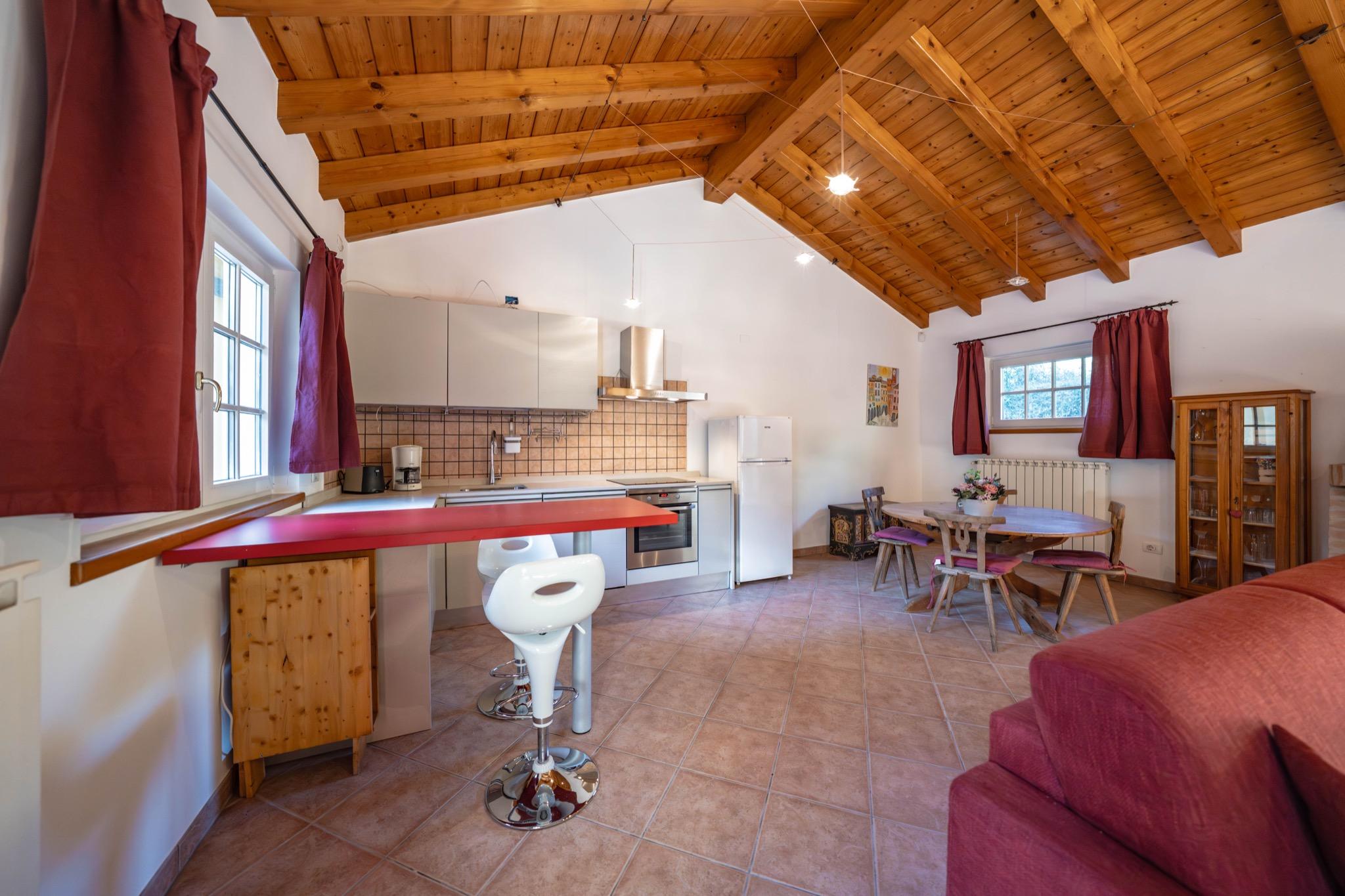 - Living area with kitchen and dining space: Fully equipped kitchen, dining area, and comfortable sofa – perfect for relaxing moments together.