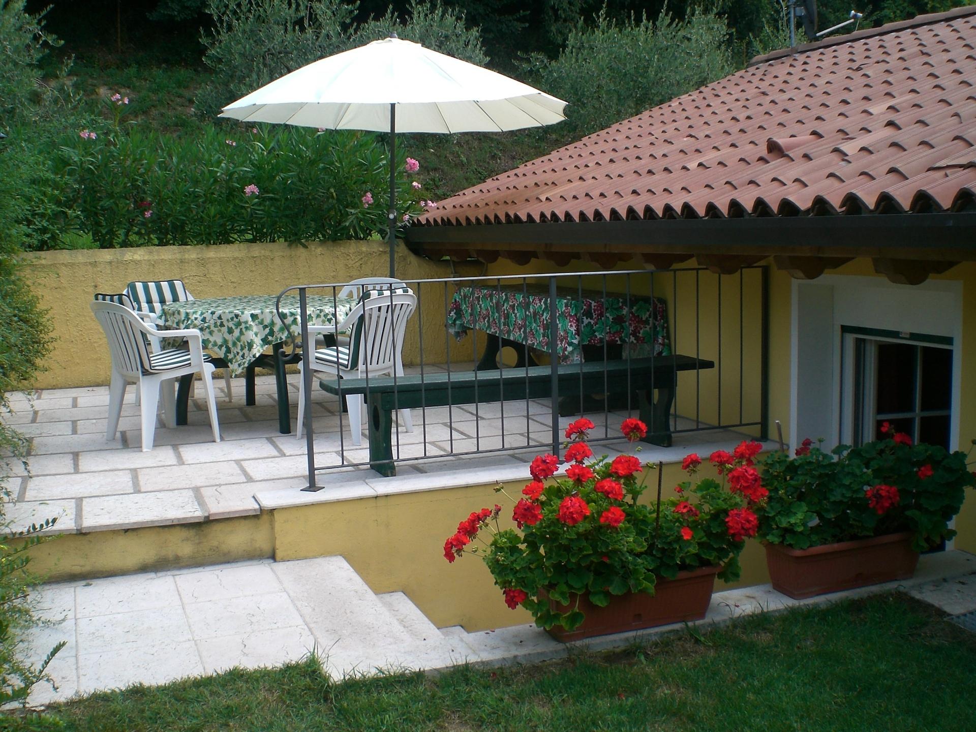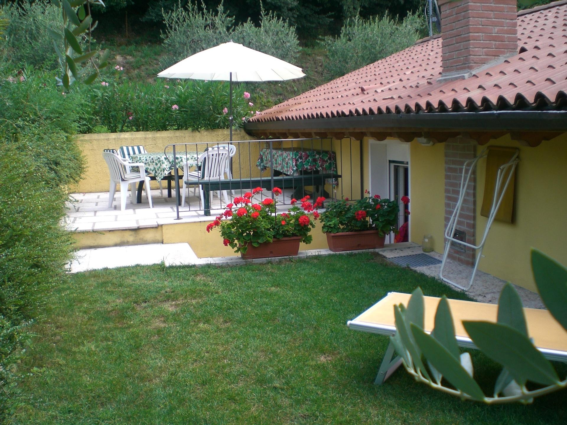 - Private outdoor area: Terrace with dining table and umbrella, and garden with sun loungers – ideal to enjoy sun and nature in complete tranquility.